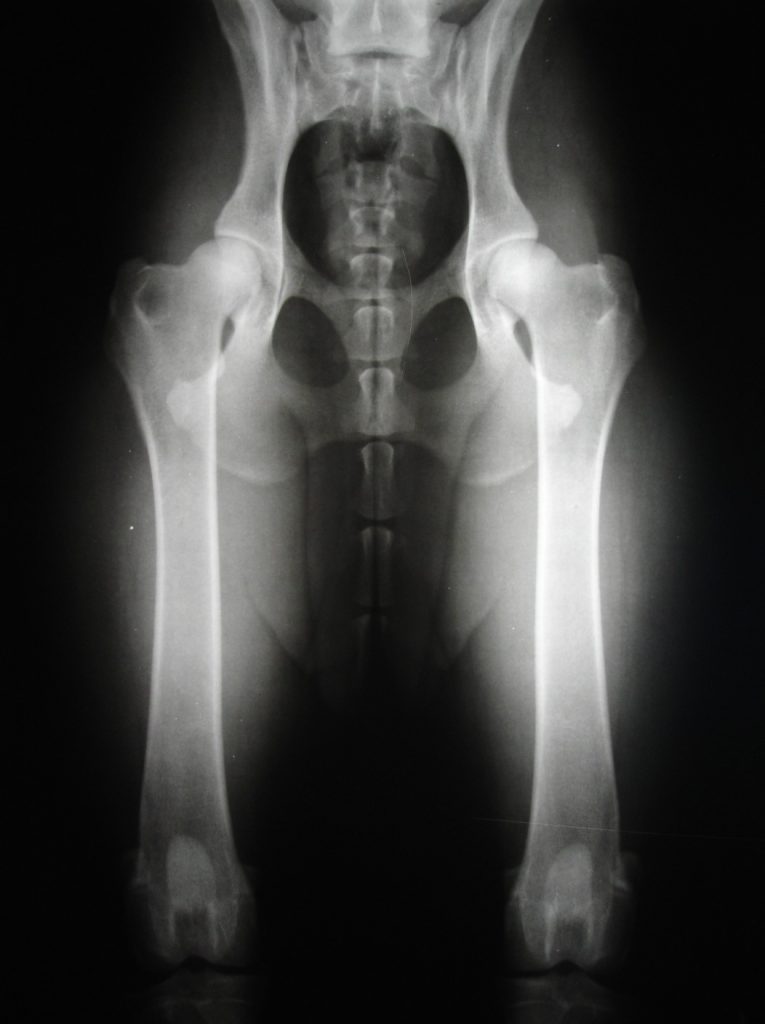 2. X-Ray picture cranio-caudale (The dog is lying on the chest).