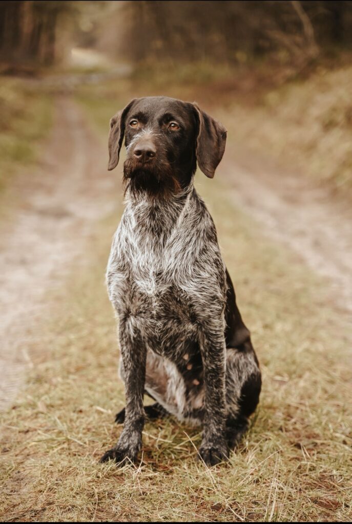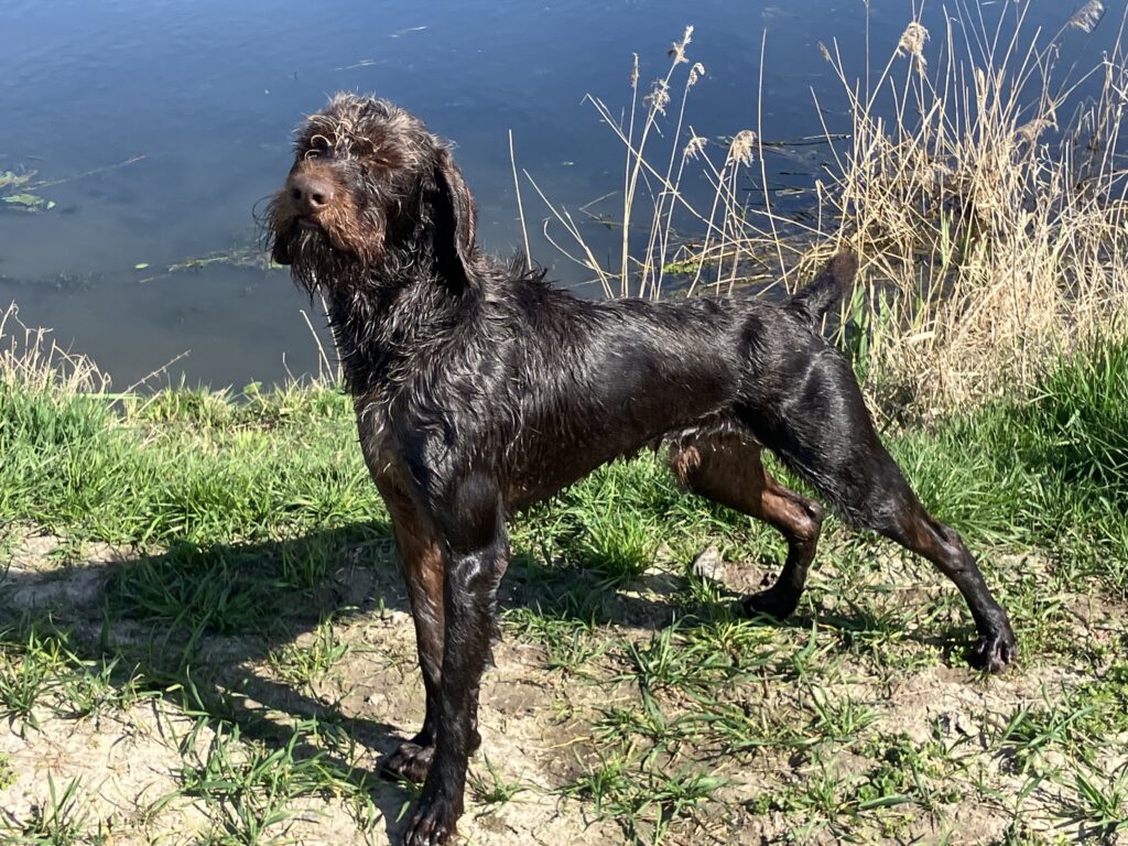 Beschreibung des Hundes: Amboss vom Fangieser ist ein ruhiger, ausgeglichener und zugleich wachsamer Deutsch-Drahthaar-Rüde vom Mittelschlag, der sowohl im Revier als auch im Alltag überzeugt. Er zeigt sich stets freundlich und liebevoll im Umgang mit Kindern und ist verträglich mit Artgenossen. Im jagdlichen Einsatz zeigt er seine ganze Klasse: Amboss ist wasserfreudig und auf Niederwild und Schwarzwild eingejagt, er arbeitet sehr führerbezogen. Ein verlässlicher, charakterstarker Jagdbegleiter ist nun bereit für neue Aufgaben.
