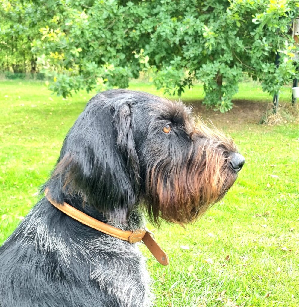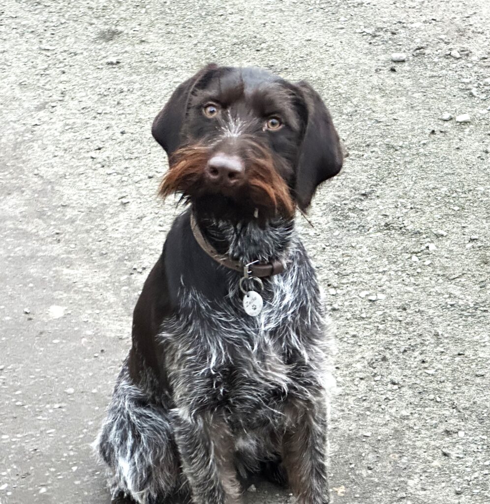 Beschreibung des Hundes: Schicke typvolle brsch Hündin mit kräftigem Bart WT 20.04.2025 nach der VJP im April nur in Jäger Hände abzugeben. Saba ist im Apport gut durchgearbeitet und bringt mit sehr viel Freude Fuchs und Marder. Sie ist ruhig, ausgeglichen, selbstsicher und sozialverträglich. Fotos auf meiner Homepage.