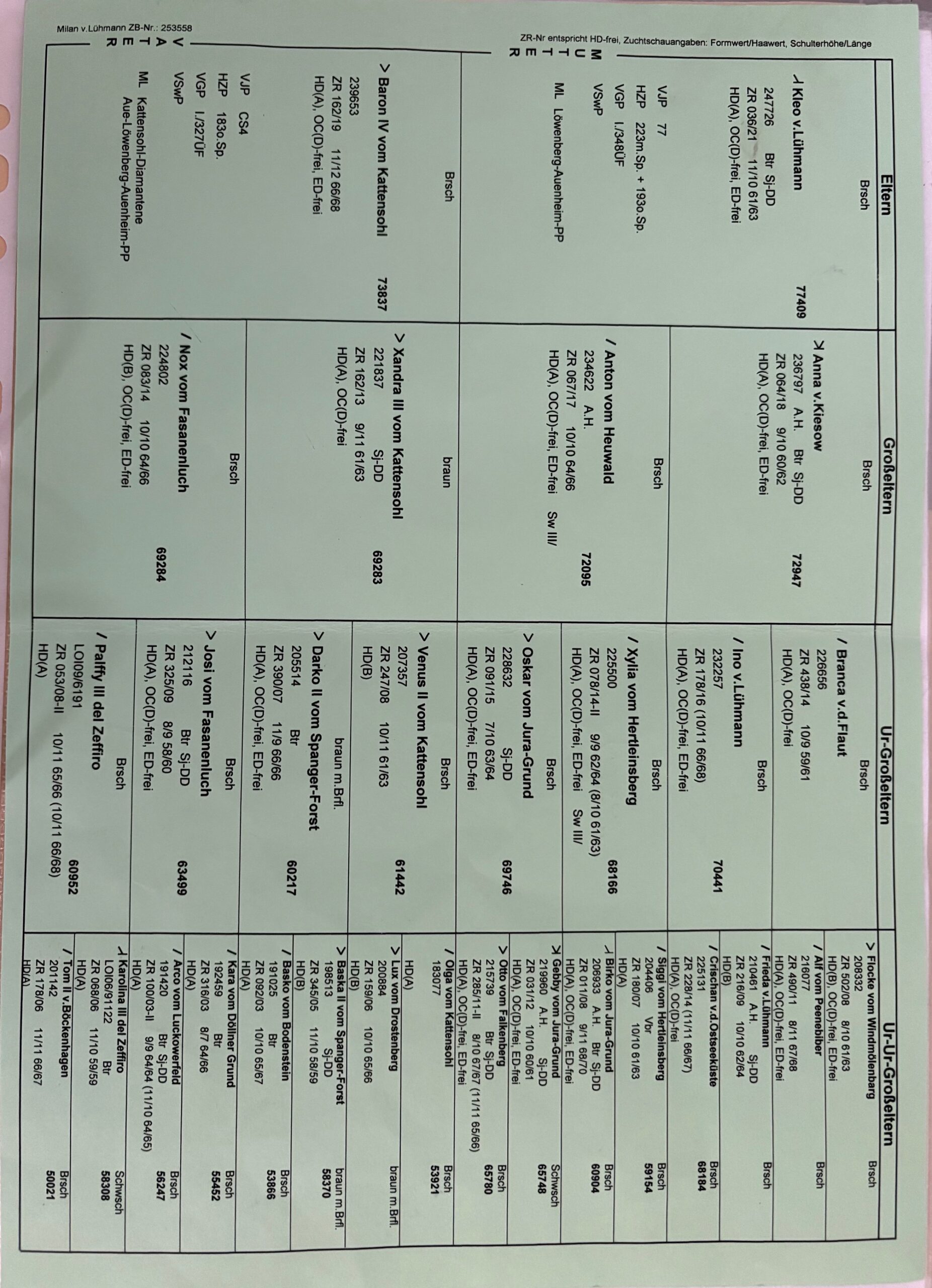 Medizinische Befunde: HD(BI – OC(D) – ED frei, vWillebrand frei, HD(93) – OCD(95) – CMO(87), W/W Homozygot Rauhaar